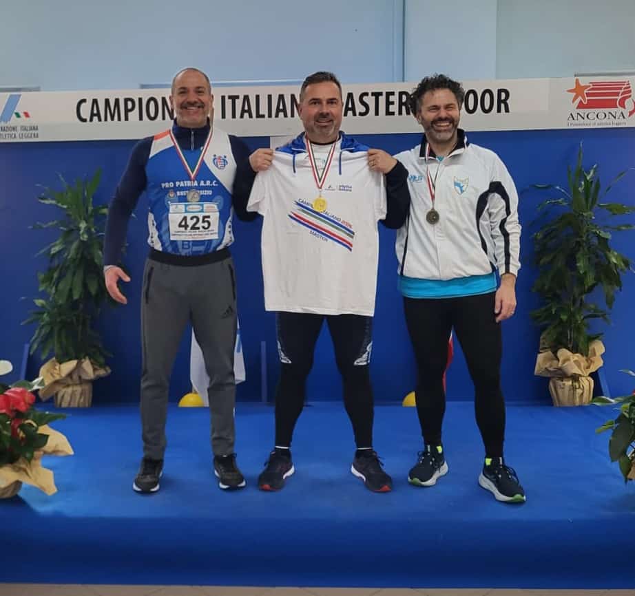 Stagione invernale che si chiude ad Ancona con in Campionati Italiani Master, sia lanci sia indoor, e che porta due medaglie d’oro al nostro Alessandro Gissi, primo nella categoria SM40-45 sia nel martello (47,42) sia nel martello con maniglia indoor (13,26).