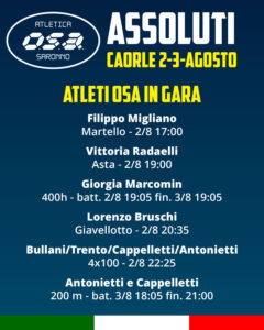 CHALLENGE: ALTRI QUATTRO ATLETI OSA QUALIFICATI PER GLI ITALIANI ASSOLUTI! Luglio 21, 2025 Leggi tutto »